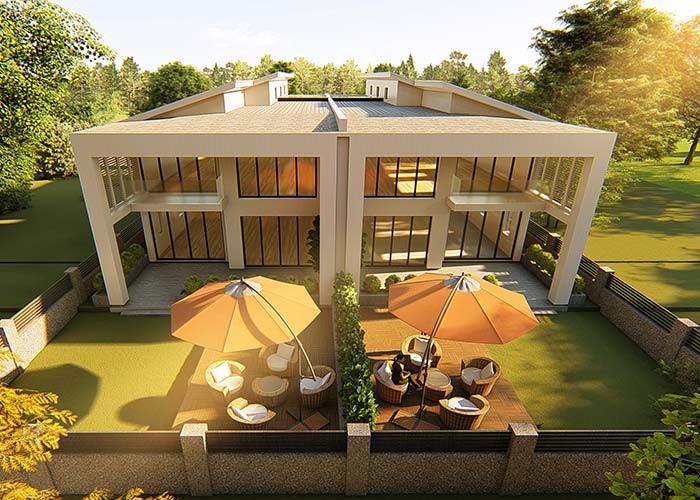 บ้านเดี่ยวหรูหราแบบเตรียมพร้อม พร้อมกรอบเหล็กเบา หรือระบบแผ่น