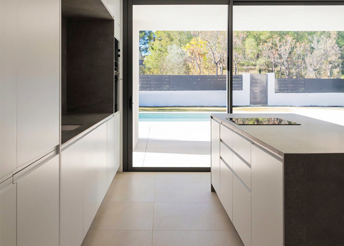 ค้นพบความเรียบง่ายที่ประณีตของบ้านแคลการี บ้านชั้นเดียวสไตล์โมเดิร์นที่ออกแบบมาเพื่อการใช้ชีวิตที่หรูหราและราบรื่น ครอบคลุมพื้นที่ขนาด 22 x 25 เมตร บ้านรูปตัว L หลังนี้โอบล้อมพื้นที่ใช้สอยทั้งภายในและภายนอกอาคารประมาณ 550 ตารางเมตร ซึ่งจัดวางอย่างพิถีพิถัน