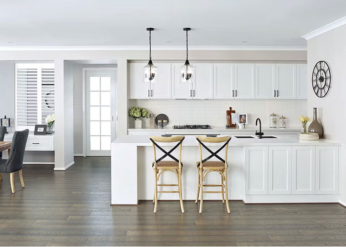ใจกลางของบ้านคือห้องครัวแบบเปิดโล่งที่ไหลลื่นเข้าสู่พื้นที่รับประทานอาหารได้อย่างลงตัว พื้นที่นี้เหมาะสำหรับมื้ออาหารประจำวันและการรวมตัวแบบสบายๆ จากพื้นที่รับประทานอาหาร ประตูบานเลื่อนอะลูมิเนียมที่สง่างามเปิดออกเพื่อเผยให้เห็นไฮไลท์ที่แท้จริง: ห้องกลางแจ้งที่มีหลังคา พื้นที่อเนกประสงค์นี้ขยายพื้นที่ใช้สอยของคุณได้อย่างง่ายดาย เหมาะสำหรับการเพลิดเพลินตลอดทั้งปี ตั้งแต่กาแฟยามเช้าไปจนถึงความบันเทิงยามเย็น