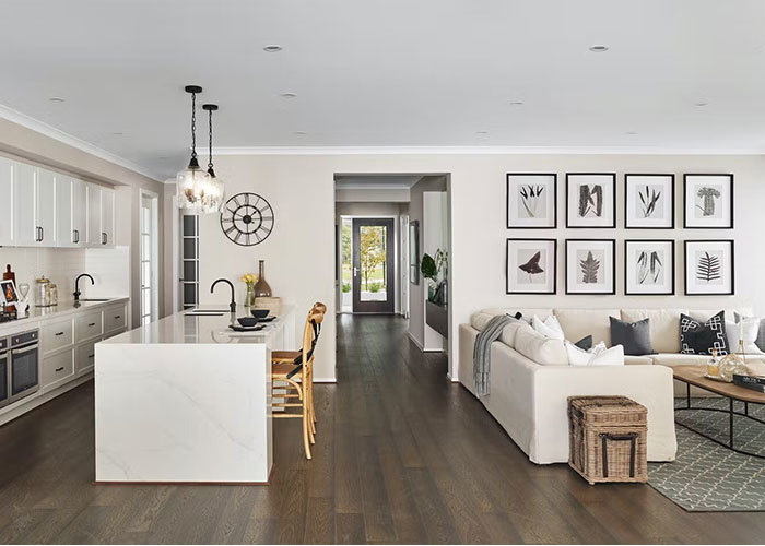 ห้องนั่งเล่นตั้งอยู่ด้านหลังของบ้านเพื่อเพิ่มความเงียบสงบ เป็นที่พักผ่อนที่แยกจากกันและอบอุ่นสำหรับการพักผ่อนและใช้เวลากับครอบครัว เพื่อให้การจัดวางเป็นไปอย่างสมบูรณ์แบบ โรงรถสองคันที่สะดวกสบายตั้งอยู่ทางด้านขวาของทรัพย์สิน